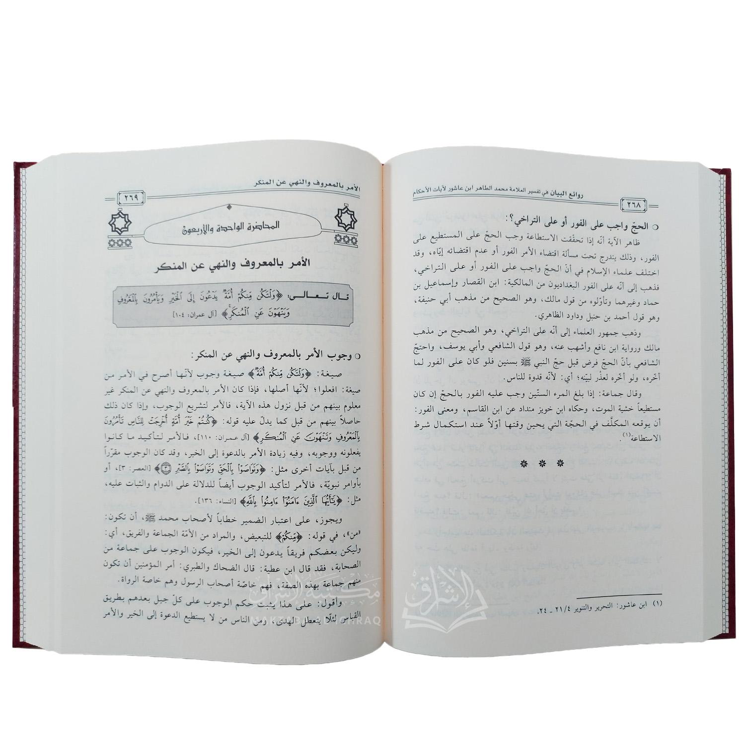 يُعد كتاب “روائع البيان في تفسير العلامة محمد الطاهر ابن عاشور لآيات الأحكام” من أبرز الجهود المعاصرة في جمع آيات الأحكام من تفسير إمام التجديد في العصر الحديث العلامة محمد الطاهر بن عاشور، حيث قام العلامة الدكتور إلياس دردور باستخلاص الآيات المتعلقة بالأحكام الشرعية من موسوعة الإمام طاهر بن عاشور التفسيرية “التحرير والتنوير”، وأعاد عرضها وترتيبها وفق تسلسل سور المصحف الشريف، مرفقًا إياها بشروح وتحليلات فقهية ومقاصدية تُبرز غنى هذا التفسير ودقته في استنباط المعاني الشرعية