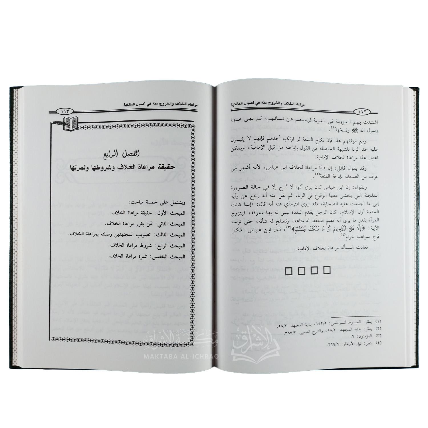 يتناول الكتاب مفهوم مراعاة الخلاف، وهو اعتبار أقوال المجتهدين من أئمة الفقه في المسائل المختلف فيها، خاصة عند المالكية، حيث يُعد من القواعد الأصولية التي تُراعى فيها مصالح الناس والتخفيف عنهم. كما أنه تناول مفهوم الخروج من الخلاف، وقد أشار المؤلف إلى أن هذا الموضوع لم يُفرد بالبحث سابقًا، مما يُبرز أهمية هذا العمل في سد هذا الفراغ العلمي