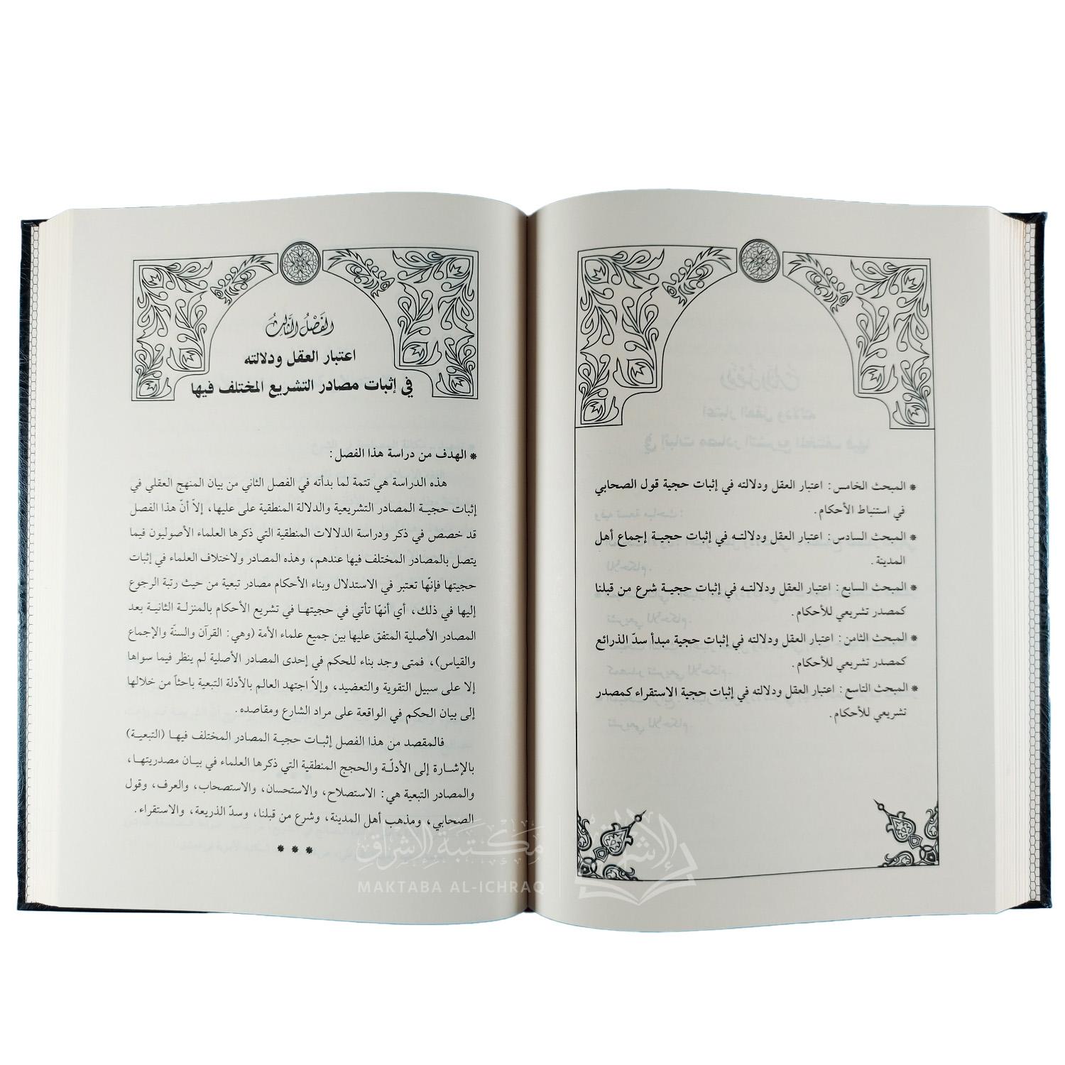يتكون الكتاب من أربعة فصول، تناولت المفاهيم التأسيسية، ودور العقل في إثبات المصادر المتفق عليها، ثم المختلف فيها، وصولًا إلى بحث دور العقل في تقرير حجية المصادر. ويتميّز الكتاب بوضوح المنهج، وسعة الاستقراء، مع ربط علمي دقيق بين النصوص الشرعية والقواعد العقلية