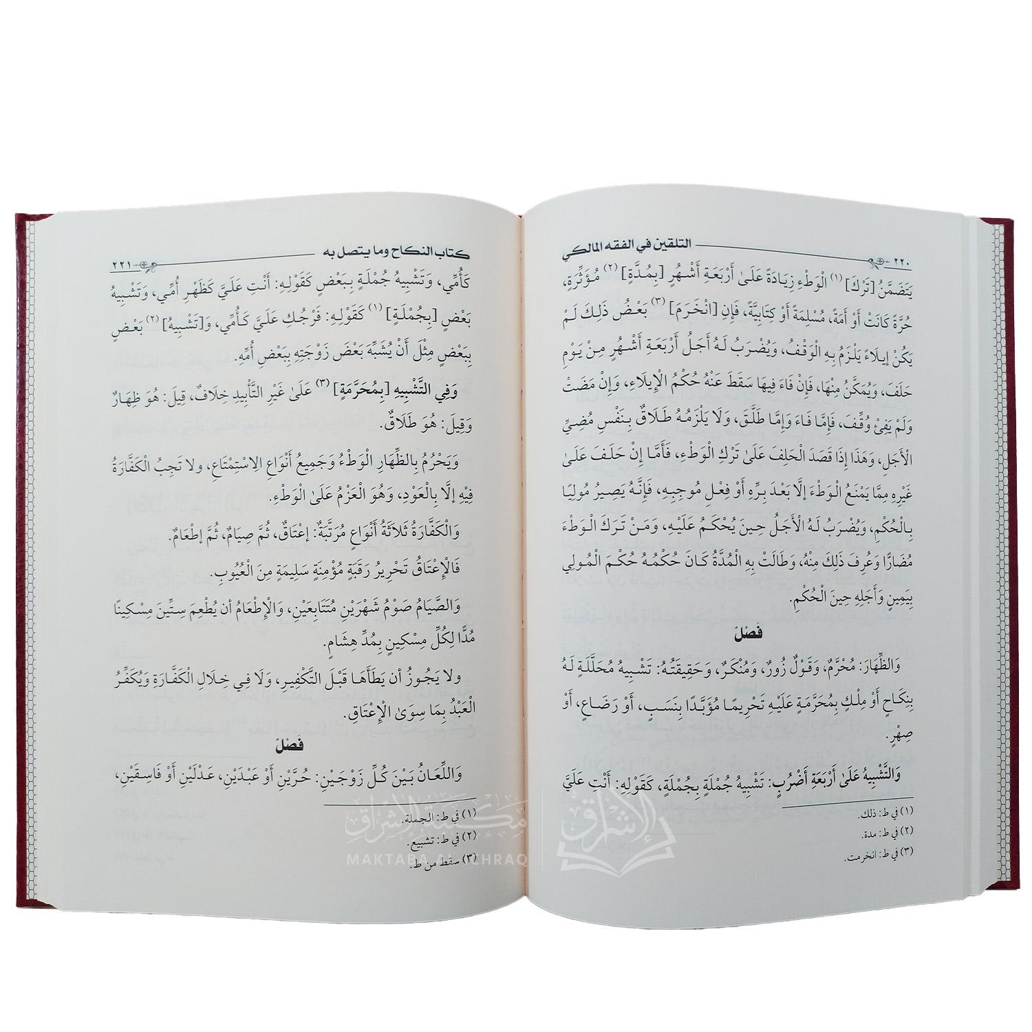ويُعد كتاب “التلقين” من أبرز وأهم كتب الفقه المالكي، فقد قُصد به التلقين والتأصيل، وسلك فيه مؤلفه منهج التبسيط دون إخلال، والتقريب دون تعقيد. وقد حظي بعناية العلماء، فشرحه عدد من الفقهاء، مما يدل على مكانته العلمية