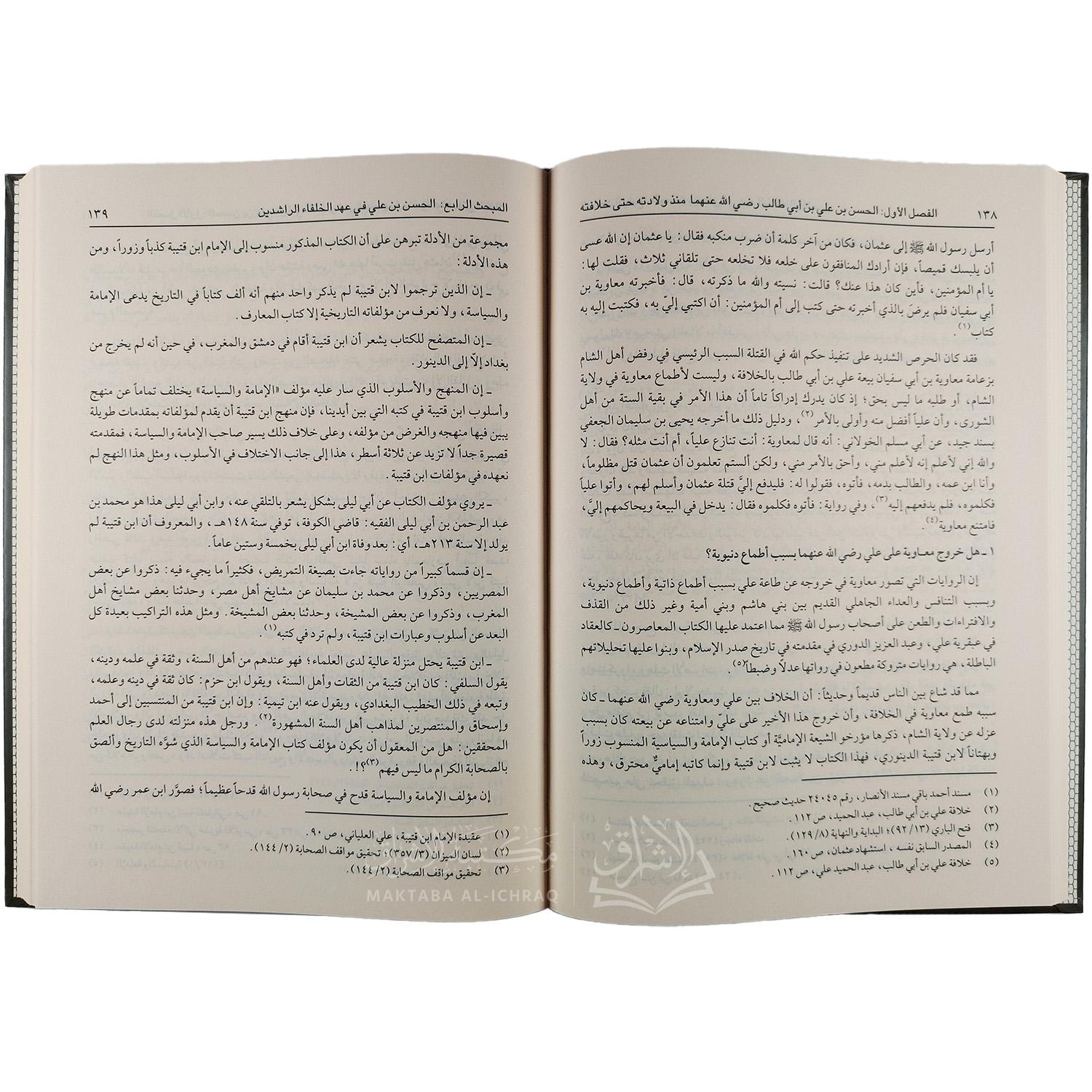 كما يتناول الكتاب الأيام الأخيرة من حياة الإمام الحسن، مقدمًا تحليلًا موضوعيًا للأحداث التي أحاطت بوفاته. ويعدّ هذا الكتاب اللبنة الأخيرة في سلسلة تاريخ الخلفاء الراشدين التي كتبها المؤلف، ليكمل بها دراسة هذه الحقبة المهمة من التاريخ الإسلامي بأسلوب تحليلي ومنهجي متميز.