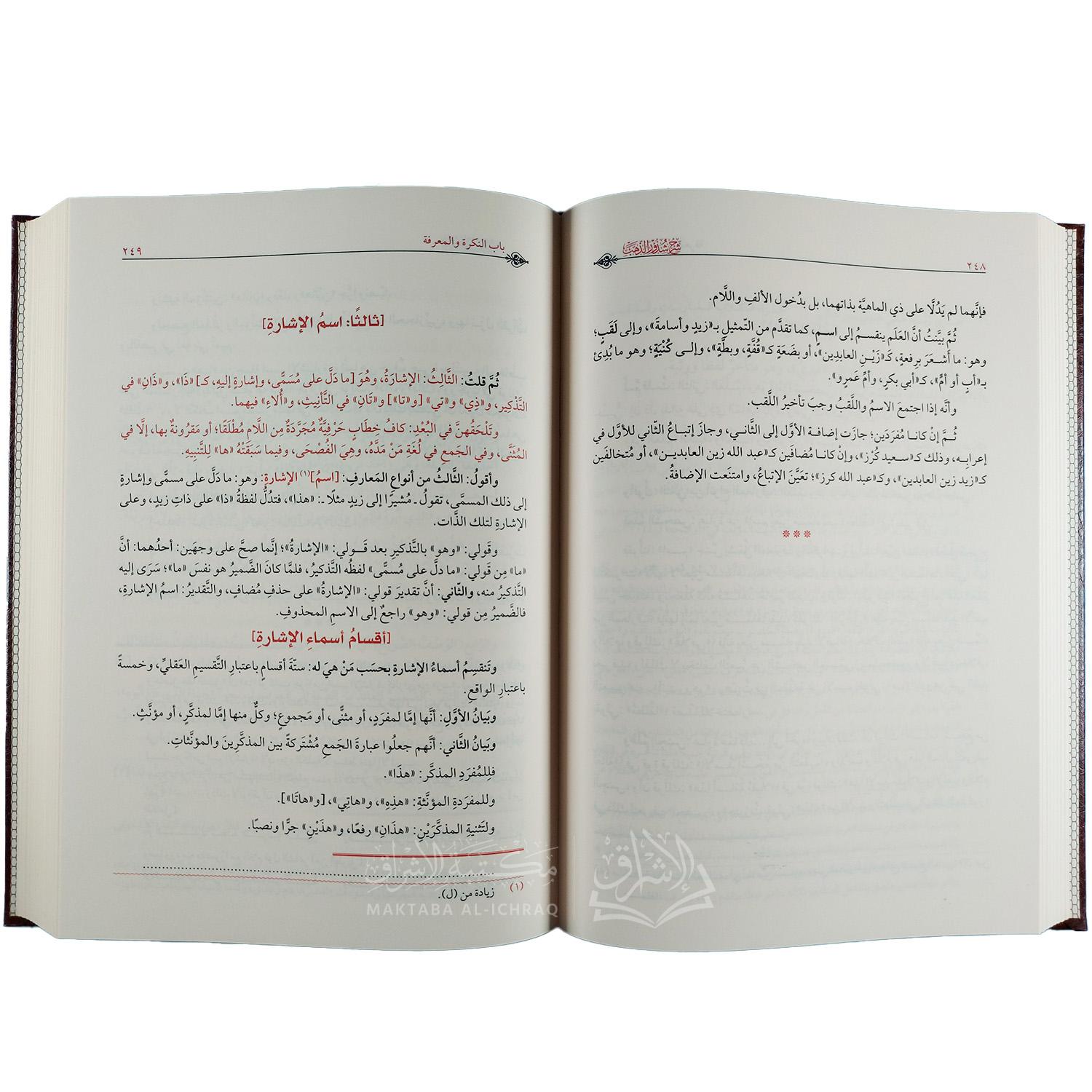 يتضمن الكتاب مجمل أبواب النحو، ويُعد من الكتب النحوية المعتمدة في التعليم، لما يحتويه من تفصيل للمسائل النحوية، وذكر لأقوال النحاة، واستشهاد بالقرآن والشعر وكلام العرب، وقد تمم المؤلف شواهده وشرح عباراته شرحًا وافياً، مع إيراد الأمثلة الدقيقة لتوضيح القواعد
